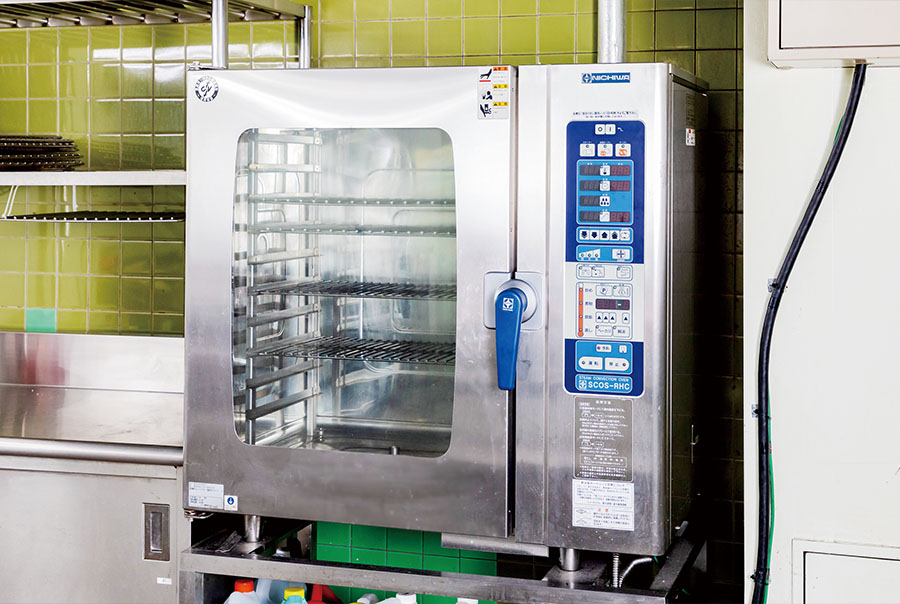 「蒸し料理」、「焼き料理」ができる多機能の加熱調理機器です。温度と湿度を調整した調理ができるのが特徴です。