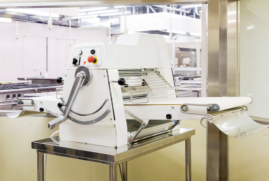 お菓子やパンの生地を短時間で均一に伸ばすことができる機械です。クロワッサンやデ二ッシュを作るときなどに使用します。