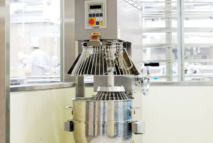 急速冷凍庫や製菓、製パン専用オーブン、ミキサーなど製菓・製パン実習の為の設備・器具を完備。
