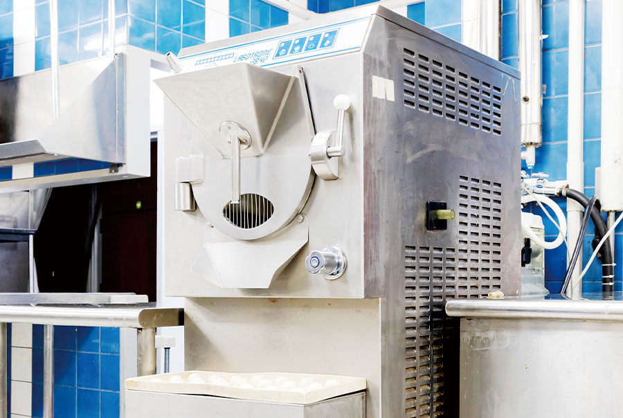 プロも使用する、イタリア・カルピジャー二社のアイスクリームマシン。作りたてのアイスクリームは格別です。