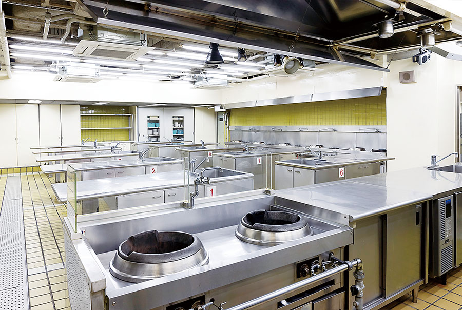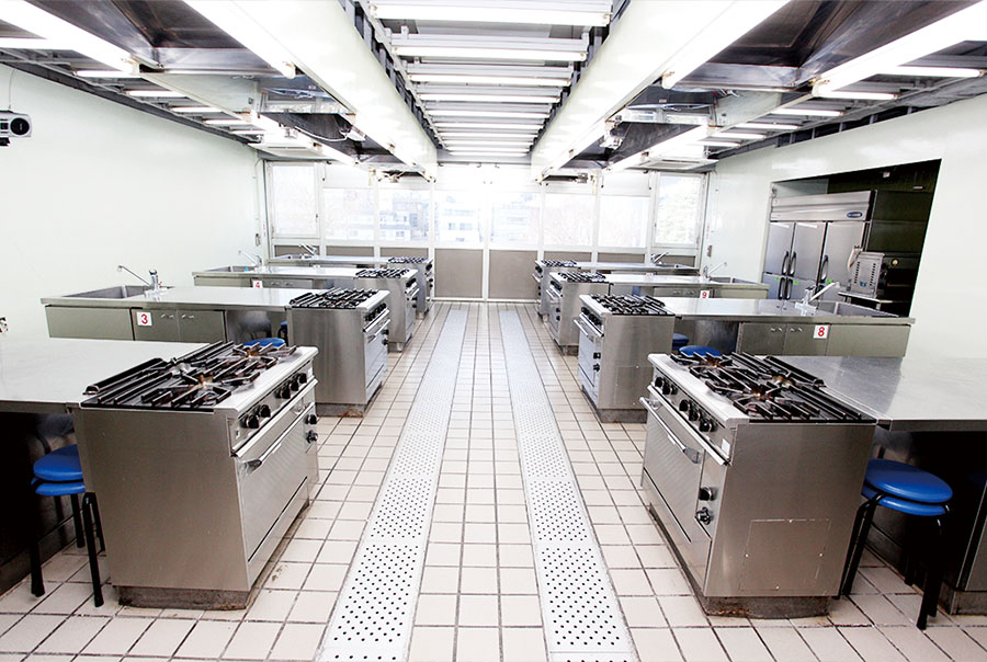 多種・多様な料理にもオールマイティーに対応できる実習室。