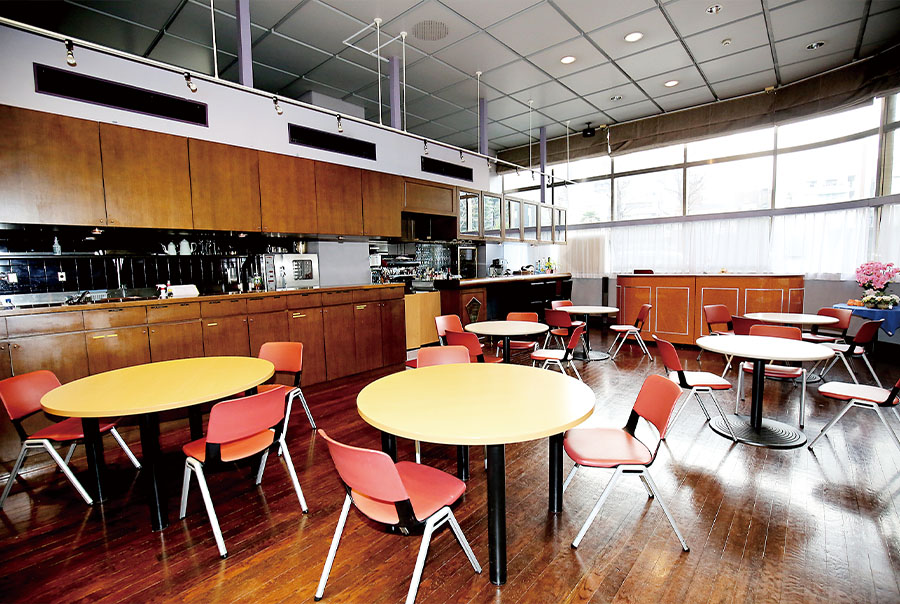 前方に最新の調理施設を備え、デモンストレーションでプロが一流の技を披露する施設。