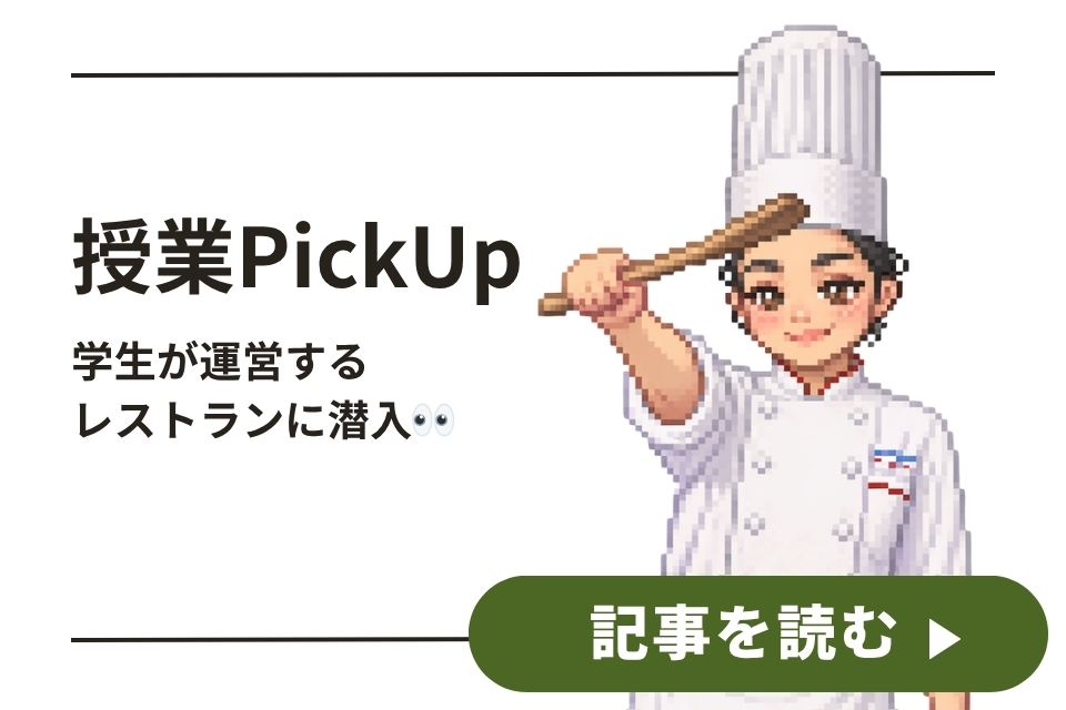 レストランを運営する為の知識や技術と、サービスを学ぶことで、お客様に喜んでいただくための「おもてなしの心」を実感することができます。また、卒業後の就職先でもこの経験は必ず役立ちます。