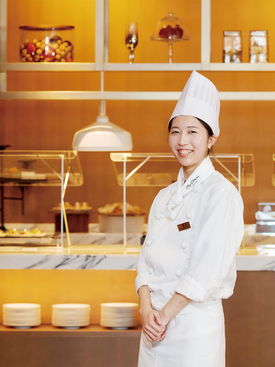 世界中の人々を笑顔に在学中は知識や技術だけでなく、礼儀や挨拶の大切さを徹底して教えていただきました。また、就職した際に即戦力となれるよう、準備をしっかり行うこと、作業の効率性を上げることを常に意識し授業に取り組んでいました。実際、ホテルオークラという一流のホテルで働き、それらはとても重要だと実感しています。現在の主な仕事は、パン生地の仕込みや成形と先輩方の補助をしています。先輩方の高い技術に触れながら、自分自身の技術向上を目指し、世界各国からお越し下さるお客様に最高のパンを提供できることにとてもやりがいを感じています。今後も、どんな時も諦めず自分を信じてこの仕事を続けていこうと思っています。