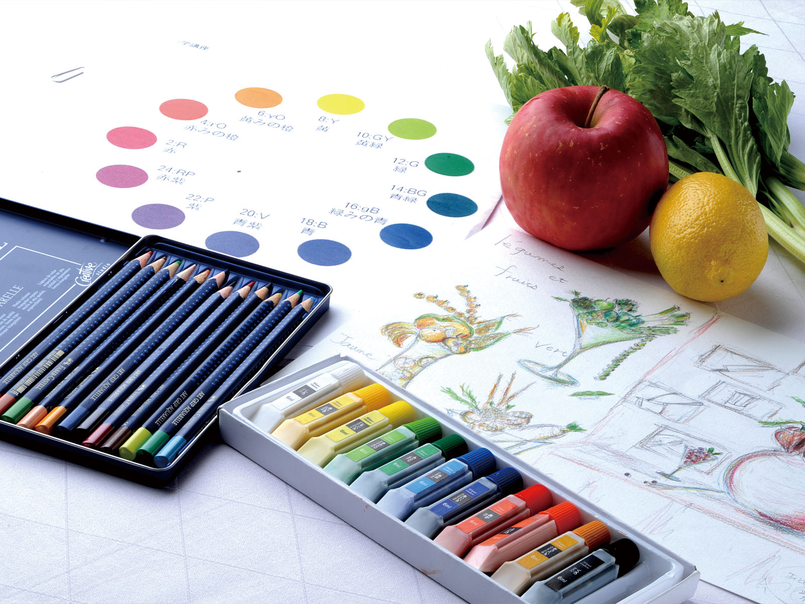 新メニューの企画、コンセプトメニュー考案などに必須なデザイン力を学びます。色彩を学び調理の盛り付けに役立てます。色彩の表現を学んだ上で、コーディネートシートの作成を行い、実際のレシピが提案できるよう学んでいきます。