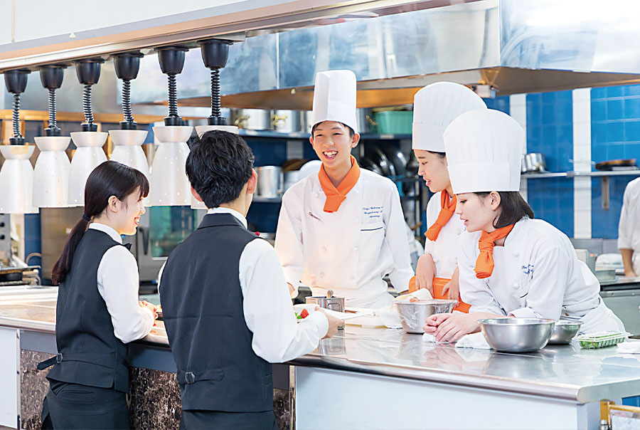 1年次は西洋料理、日本料理、中国料理の基礎力を身につけ、2年次より各コースに分かれて専門知識と技術を身につけます。