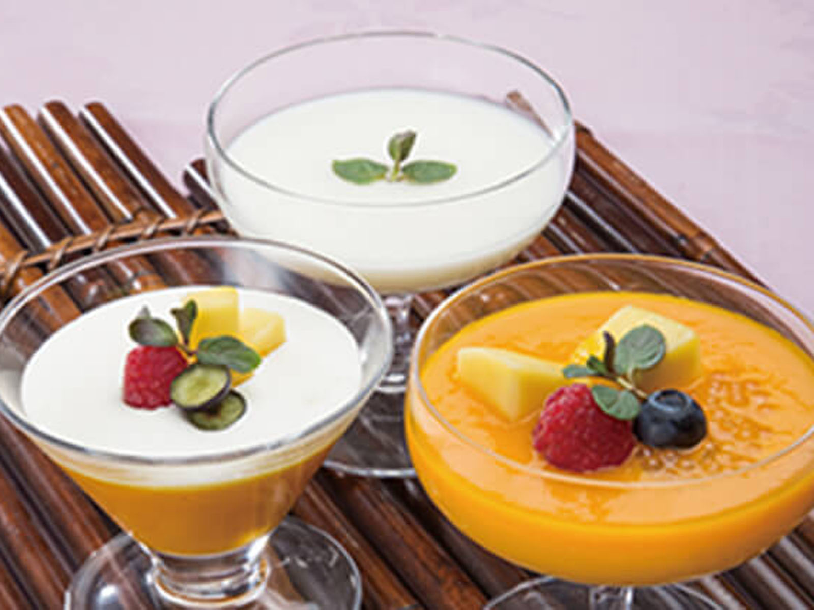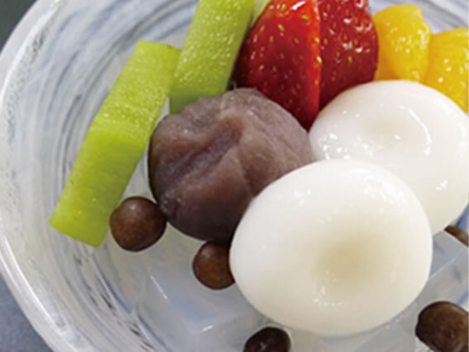 コース料理を作れる調理師になる為、寒天・ゼラチンなどを使用し、抹茶ババロア・白胡麻プリンなど食事の後の甘味を学びます。