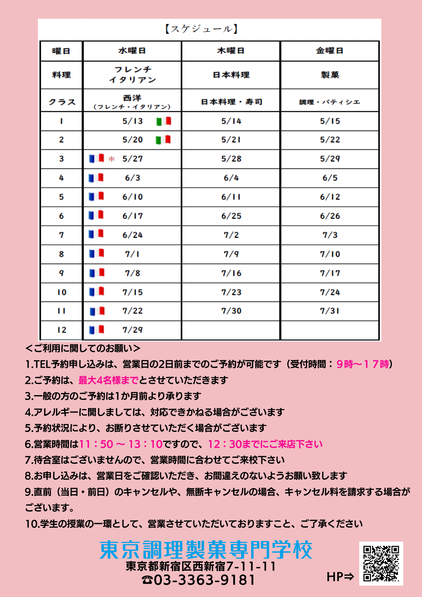 6️⃣営業時間は11:50 ~ 13:10ですので、12:30までにご来校ください