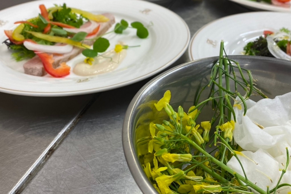 料理を仕込む際の食品ごみを利用し、新たな作物へと循環を通して