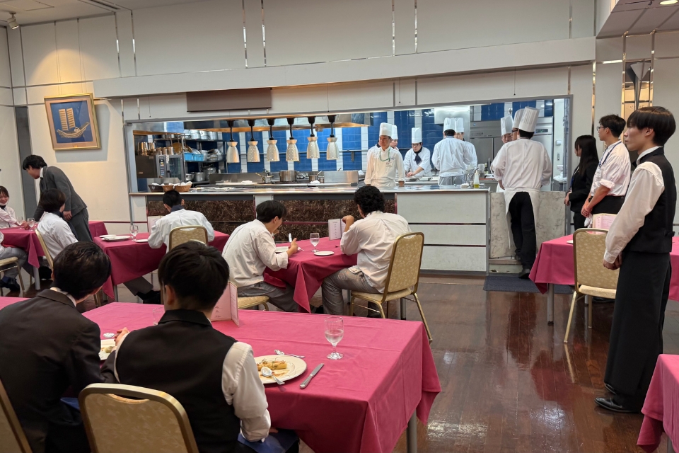学生が運営するレストランの授業です。今回はお客様がはいる前のシミュレーションに密着しました📝